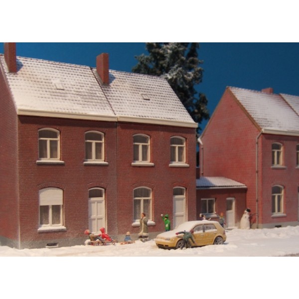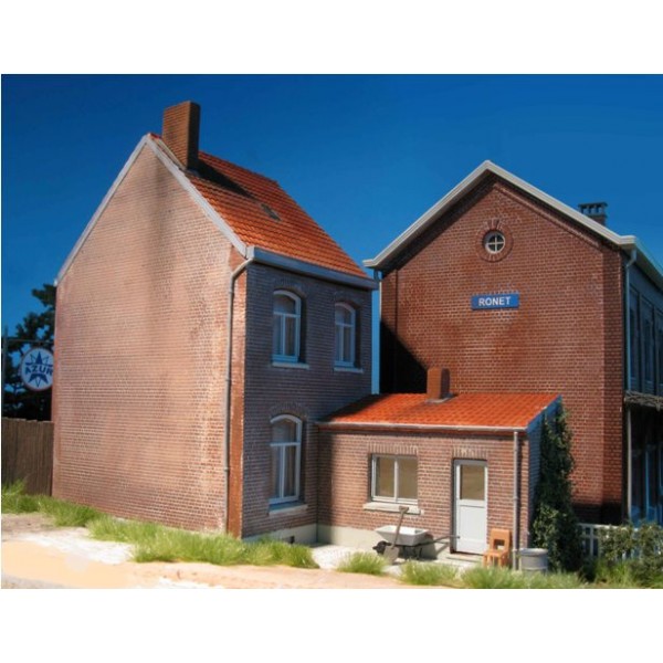 Le kit permet la construction d'une maison complète avec un appentis (version A), ou de deux maisons en demi-relief convenant pour un fond de décor (version B).
